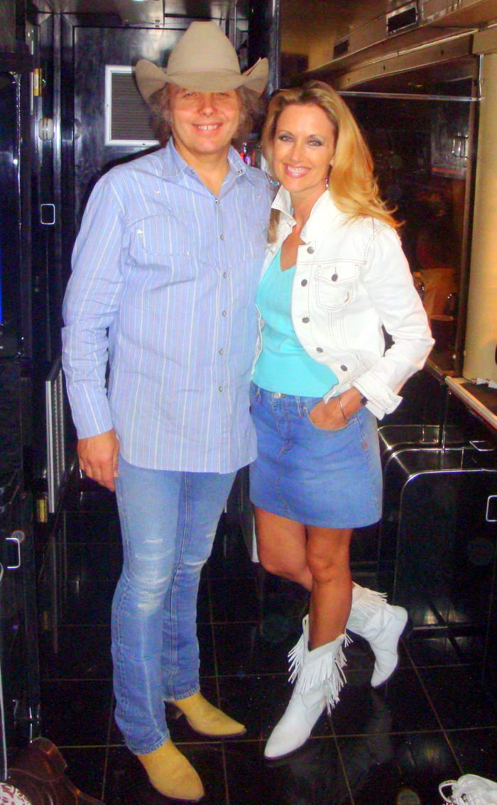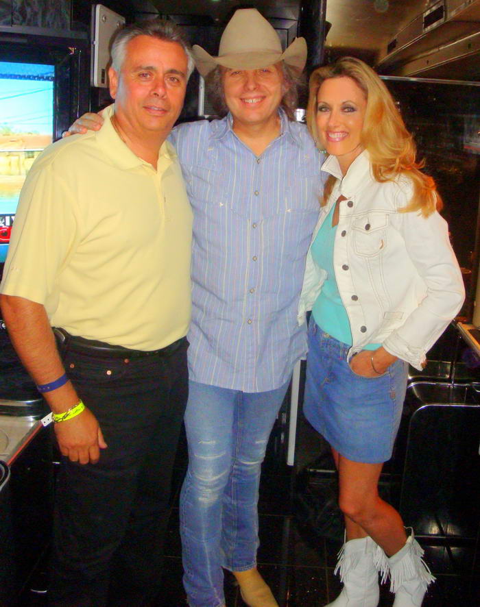 Alfred and Yvonne DiMora enjoy a visit with Dwight Yoakam before he steps on stage for a concert in Hemet, California.